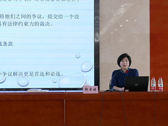 培訓(xùn)環(huán)節(jié),解常晴副院長圍繞“仲裁解決商事爭議的優(yōu)越性”“訂立有效有利的仲裁條款與合同爭議解決法律風(fēng)險控制” “仲裁條款訂立原則、策略和技巧”“企業(yè)參加仲裁程序應(yīng)注意的關(guān)鍵問題 ”“中國貿(mào)仲的實踐與發(fā)展”五個方面展開講解。她從商事仲裁的起源、概念、特征入手闡明商事仲裁的基本內(nèi)涵,結(jié)合豐富的案例和數(shù)據(jù)詳細(xì)介紹了仲裁的優(yōu)越性,進(jìn)而對企業(yè)訂立仲裁條款和參與仲裁程序應(yīng)注意的問題進(jìn)行重點提示和指導(dǎo),并為中石油天然氣銷售系統(tǒng)爭議解決條款的訂立提出具體建議。解常晴副院長最后介紹了貿(mào)仲的歷史和發(fā)展成就,并表示新時代背景下,貿(mào)仲將積極發(fā)揮總分會整體的專業(yè)優(yōu)勢,努力為各地企業(yè)就近提供公正高效的仲裁服務(wù)。