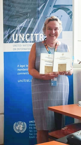 為紀(jì)念《聯(lián)合國(guó)國(guó)際貨物銷售合同公約》(CISG)通過(guò)40周年,2021年6月25日,中國(guó)國(guó)際經(jīng)濟(jì)貿(mào)易仲裁委員會(huì)(貿(mào)仲)與聯(lián)合國(guó)國(guó)際貿(mào)易法委員會(huì)(聯(lián)合國(guó)貿(mào)法會(huì))、中華人民共和國(guó)商務(wù)部、中國(guó)國(guó)際貿(mào)易促進(jìn)委員會(huì)共同主辦專題國(guó)際研討會(huì),作為聯(lián)合國(guó)貿(mào)法會(huì)全球系列紀(jì)念活動(dòng)的中國(guó)專場(chǎng)。貿(mào)仲副主任兼秘書(shū)長(zhǎng)王承杰先生在會(huì)上就CISG在中國(guó)仲裁的適用作了專題報(bào)告,同時(shí)宣布貿(mào)仲組織研究、編撰的《聯(lián)合國(guó)國(guó)際貨物銷售合同公約在中國(guó)仲裁的適用》一書(shū)正式出版。會(huì)后,該書(shū)的中英文版本被聯(lián)合國(guó)貿(mào)法會(huì)圖書(shū)館收錄,秘書(shū)長(zhǎng)安娜?喬賓布萊特女士在收到貿(mào)仲贈(zèng)書(shū)后發(fā)來(lái)與該書(shū)的合影,并再次對(duì)貿(mào)仲表示感謝。