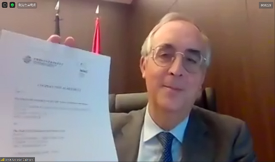 2021年7月8日,中國國際經(jīng)濟(jì)貿(mào)易仲裁委員會(huì)(CIETAC)與西班牙馬德里國際仲裁中心(MIAC)通過線上方式舉行了《合作協(xié)議》簽署儀式。貿(mào)仲副主任兼秘書長(zhǎng)王承杰先生與馬德里國際仲裁中心主席José Antonio Caínzos先生分別代表雙方在《合作協(xié)議》上簽字。馬德里國際仲裁中心秘書長(zhǎng)及馬德里律師協(xié)會(huì)國際關(guān)系負(fù)責(zé)人一同出席了本次儀式。