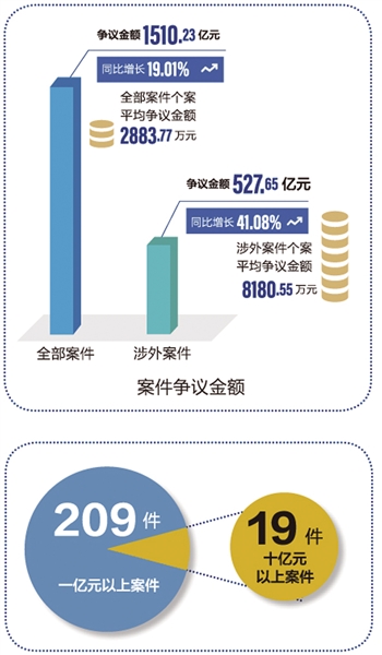 依法公平公正處理當(dāng)事人爭議,是貿(mào)仲委業(yè)務(wù)發(fā)展的重要基礎(chǔ)。《報告》顯示,2023年貿(mào)仲委仲裁案件量質(zhì)齊升,新受理案件5237件,同比增長28.17%,爭議金額人民幣1510.23億元(以下幣種均為人民幣),同比增長19.01%,連續(xù)六年破千億元大關(guān),個案平均爭議金額2883.77萬元,案件數(shù)量和標(biāo)的額均創(chuàng)歷史新高。案件國際化程度持續(xù)提升。案件涉及88個國家和地區(qū),當(dāng)事人來自71個國家和地區(qū)。雙方均為境外當(dāng)事人的國際案件62件。2023年首次實現(xiàn)“一帶一路”案件國別基本全覆蓋。案件程序復(fù)雜多樣。涉及多方當(dāng)事人案件1072宗,占總受案量20.5%;涉及多份合同案件906宗,占總受案量17.3%;涉及追加當(dāng)事人程序案件65件,合并仲裁案件64件。審理方式靈活高效。貿(mào)仲委仲裁庭結(jié)合案情采用大陸法系、英美法系方式審理案件,結(jié)合具體案件情形,靈活采用不同審理方式,依法保證仲裁程序公平正當(dāng),及時維護(hù)當(dāng)事人合法權(quán)益。案件爭議類型新穎多元。針對出現(xiàn)的新類型爭議,進(jìn)一步規(guī)范案件分類管理,其中建設(shè)工程、知識產(chǎn)權(quán)、金融等熱點領(lǐng)域案件增幅明顯。值得注意的是,新類型案件還呈現(xiàn)出新型金融爭議復(fù)雜疑難、案件數(shù)量持續(xù)增長,能源類案件保持增長態(tài)勢,知識產(chǎn)權(quán)類案件比重增加,ESG等新興領(lǐng)域糾紛進(jìn)入視野等諸多特點。