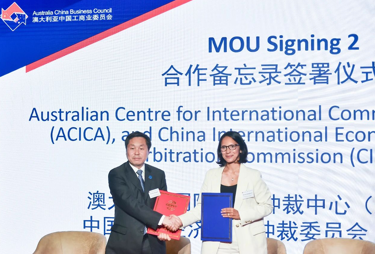 2024年4月15日,在中國貿(mào)促會會長任鴻斌率中國企業(yè)家代表團訪問澳大利亞期間,由中國貿(mào)促會和澳中工商業(yè)委員會共同主辦的中國-澳大利亞商務(wù)研討會在澳大利亞悉尼舉行。中國國際經(jīng)濟貿(mào)易仲裁委員會(以下簡稱“貿(mào)仲”)副主任兼秘書長王承杰與澳大利亞國際商事仲裁中心主席喬治婭·奎克(Georgia Quick)在悉尼簽訂了合作協(xié)議。