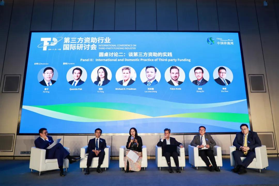 圓桌討論二環(huán)節(jié)中,厚助投資高級(jí)顧問費(fèi)寧主持,Burford董事Quentin Pak,厚助投資聯(lián)合創(chuàng)始人兼總裁傅彤,Omni Bridgeway高級(jí)法律顧問LAU Chee chong,Hilco lP Merchant Banking總裁Michael D.Friedman,Omni Bridgeway 駐新加坡投資經(jīng)理及高級(jí)法律顧問劉志聰,Nivalion高級(jí)投資經(jīng)理、慕尼黑辦公室負(fù)責(zé)人Falco Kreis,鼎頌法務(wù)創(chuàng)新集團(tuán)創(chuàng)始人張志,鄧白氏產(chǎn)品和解決方案負(fù)責(zé)人朱楨參與討論。各位嘉賓圍繞第三方資助境內(nèi)外實(shí)踐的議題,結(jié)合各自機(jī)構(gòu)在不同司法轄區(qū)的實(shí)踐經(jīng)驗(yàn),就案件篩選流程和標(biāo)準(zhǔn)、知識(shí)產(chǎn)權(quán)領(lǐng)域貨幣化與資助、仲裁規(guī)則與資助實(shí)踐的互動(dòng)、企業(yè)出海風(fēng)險(xiǎn)管理等話題進(jìn)行了分享。圓桌嘉賓認(rèn)為當(dāng)前訴訟資助客戶群體和需求呈現(xiàn)多元化態(tài)勢(shì),第三方資助機(jī)構(gòu)提供的產(chǎn)品和服務(wù)方案也在向多樣化發(fā)展。各方對(duì)第三方資助在中國的發(fā)展持樂觀態(tài)度,也分享了中國市場(chǎng)相較于國際市場(chǎng)的一些特有挑戰(zhàn)。