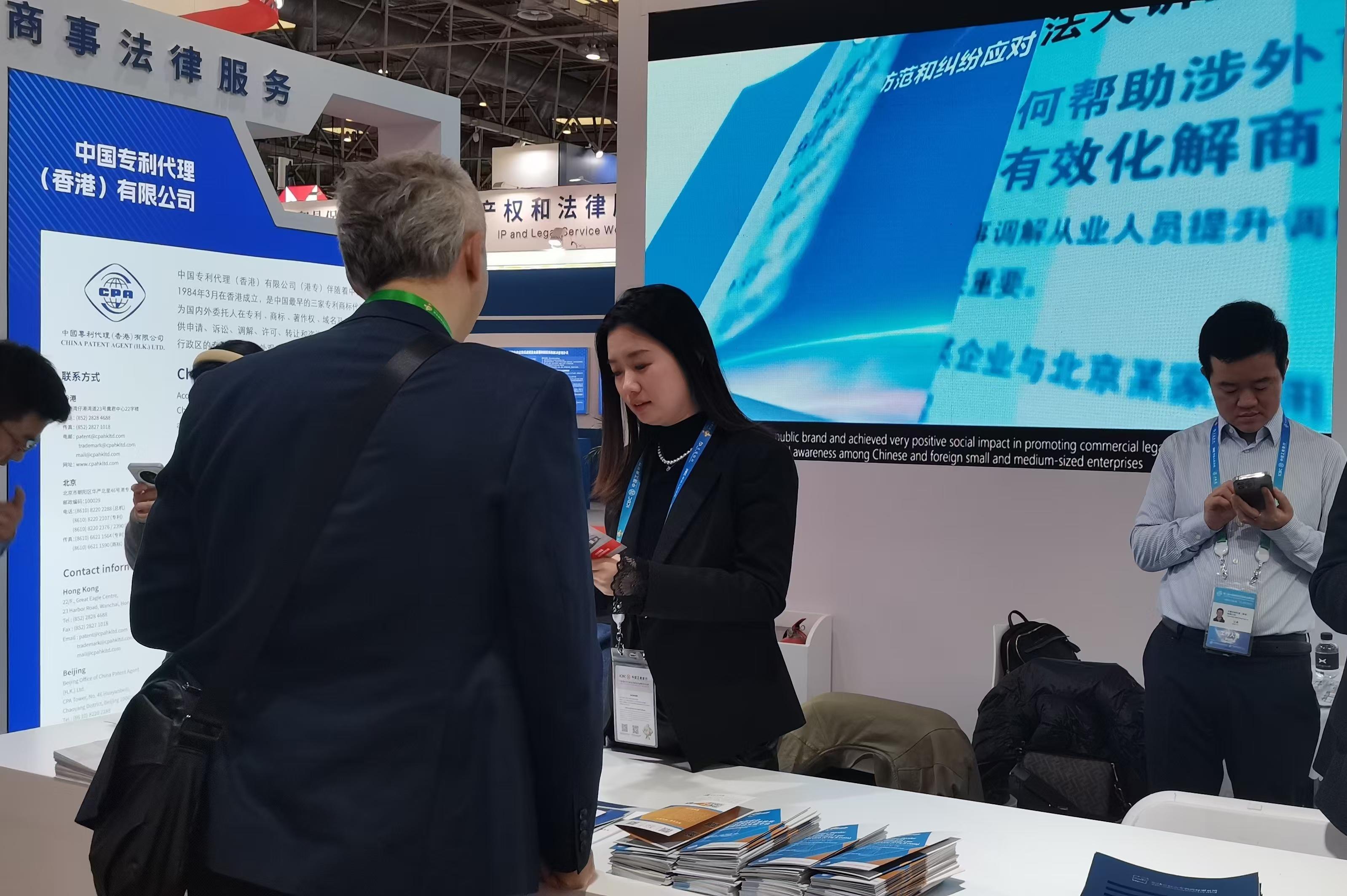 緊鄰這一展臺(tái)的,同樣是法律類機(jī)構(gòu)或組織,他們也在這次鏈博會(huì)上承擔(dān)著相關(guān)工作任務(wù)。例如,中國(guó)貿(mào)促會(huì)會(huì)同北京市知識(shí)產(chǎn)權(quán)局、順義區(qū)市場(chǎng)監(jiān)管局等單位,設(shè)立知識(shí)產(chǎn)權(quán)和法律服務(wù)工作站,多家機(jī)構(gòu)專業(yè)人員進(jìn)駐,開設(shè)專利和商標(biāo)申請(qǐng)受理窗口,建立知識(shí)產(chǎn)權(quán)糾紛快速處理機(jī)制。