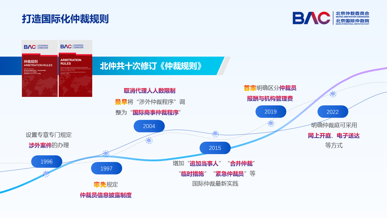 自1995年成立以來(lái),對(duì)標(biāo)國(guó)際仲裁的最新發(fā)展與最佳實(shí)踐,北仲十次修訂《仲裁規(guī)則》。