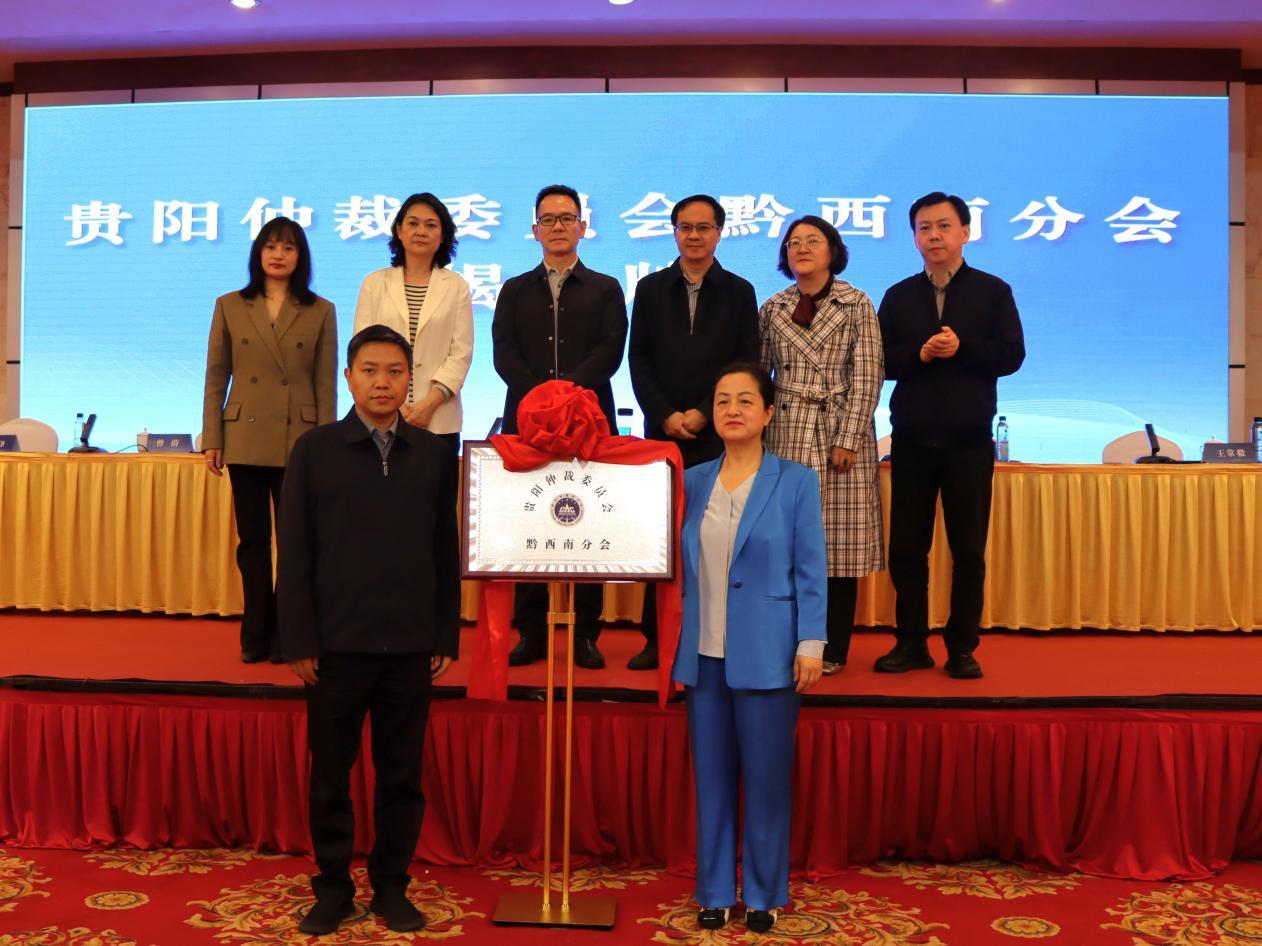 近日,貴陽(yáng)仲裁委員會(huì)黔西南分會(huì)成立儀式暨“民法典進(jìn)企業(yè)”專(zhuān)題講座在興義市成功舉行。貴州省黔西南州委常委、州委政法委書(shū)記侯美嘉,貴州省司法廳副廳級(jí)干部方文敏,貴州省政協(xié)社會(huì)與法制委員會(huì)專(zhuān)職副主任龍登華,貴陽(yáng)仲裁委員會(huì)仲裁員代表余波出席儀式。貴陽(yáng)仲裁委員會(huì)主任卜貴榮與黔西南州司法局黨組書(shū)記、局長(zhǎng)曾蔚共同為黔西南分會(huì)揭牌。貴陽(yáng)仲裁委員會(huì)副主任張譯主持會(huì)議。