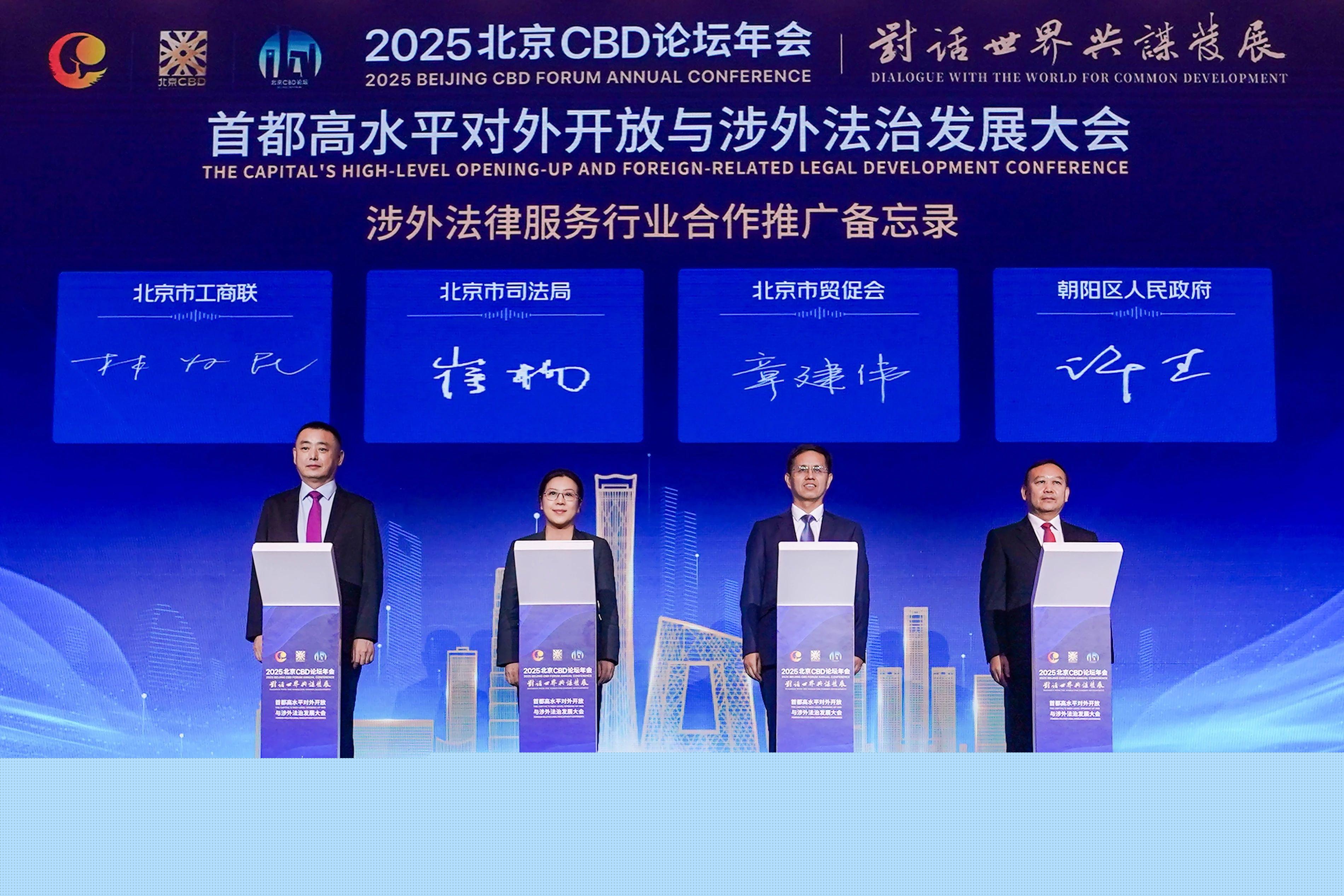 北京市司法局、朝陽區(qū)人民政府、北京市貿(mào)促會(huì)、北京市工商聯(lián)圍繞涉外法律服務(wù)機(jī)構(gòu)推介和政策保障事項(xiàng)共同簽署《涉外法律服務(wù)行業(yè)合作推廣備忘錄》。