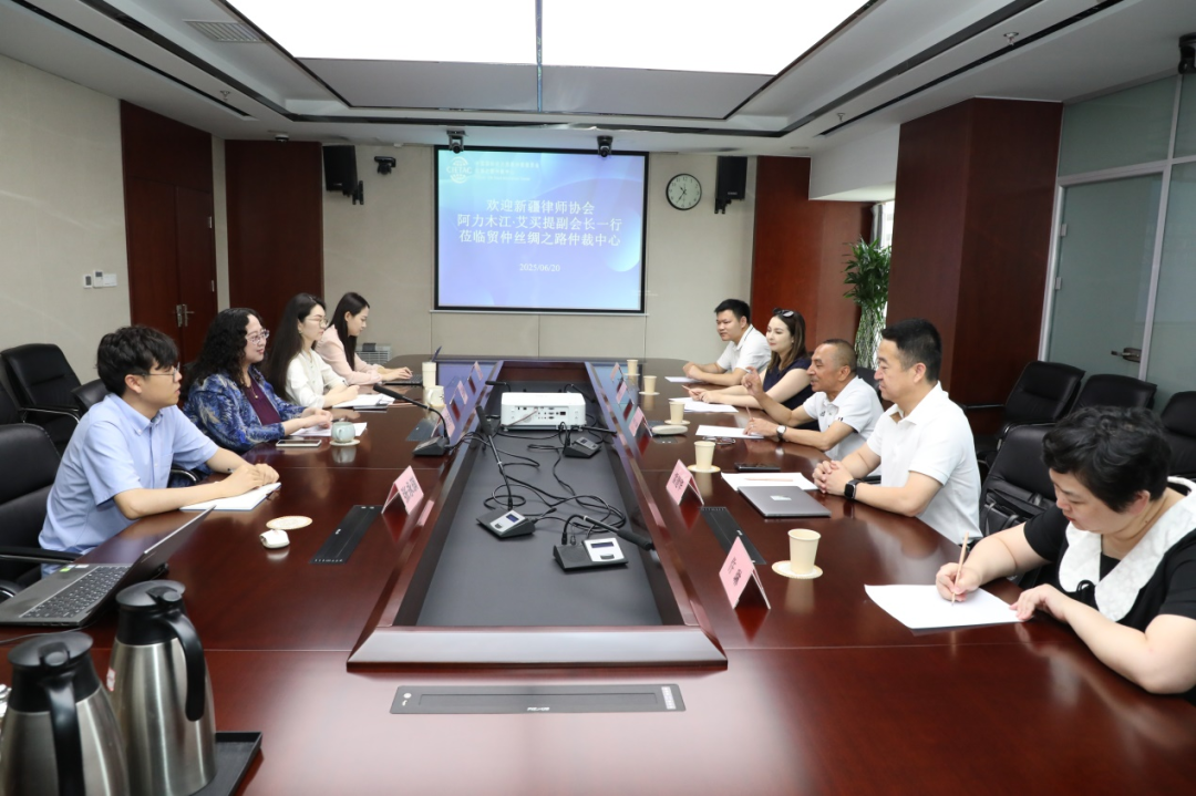 6月20日,新疆維吾爾自治區(qū)律師協(xié)會(huì)(簡(jiǎn)稱“新疆律師協(xié)會(huì)”)副會(huì)長(zhǎng)阿力木江·艾買(mǎi)提一行到訪中國(guó)國(guó)際經(jīng)濟(jì)貿(mào)易仲裁委員會(huì)絲綢之路仲裁中心(簡(jiǎn)稱“貿(mào)仲絲路中心”)。貿(mào)仲絲路中心副秘書(shū)長(zhǎng)蔣紅梅會(huì)見(jiàn)接待,雙方進(jìn)行座談。