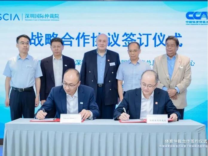 丁濤代表中國體育仲裁委員會及國家體育總局體育仲裁中心,劉曉春代表深圳國際仲裁院(粵港澳大灣區(qū)國際仲裁中心)簽署戰(zhàn)略合作協(xié)議,以服務(wù)體育強(qiáng)國建設(shè)和促進(jìn)國際著名體育城市建設(shè)為目標(biāo)開展深度合作、協(xié)同創(chuàng)新。梁定邦、張劍、盧松、熊德昌、王桂壎共同見證簽約。