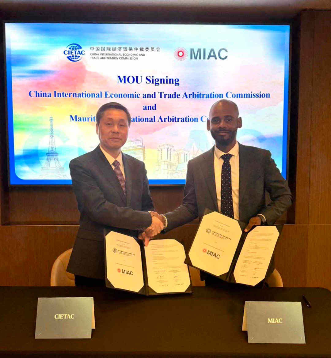會(huì)議上舉行了合作協(xié)議簽署儀式。在全體與會(huì)代表的見證下,貿(mào)仲與毛里求斯國(guó)際仲裁中心(MIAC)簽署合作協(xié)議。