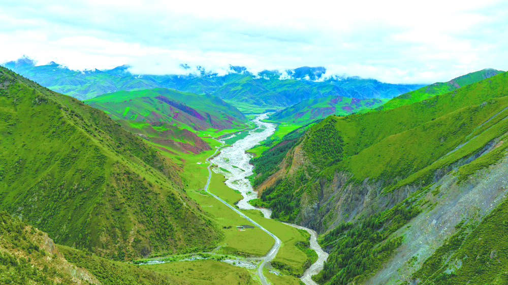 夏日的祁連山林木青翠,風(fēng)景如畫,高低延綿的山脈在陽(yáng)光的照耀下交相輝映,近處的群山被此起彼伏的林海包圍,郁郁蔥蔥。