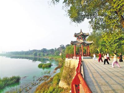 經過改造提升后的故城縣龍湖公園,景色更加宜人,成為當地居民游玩的好去處。河北日報通訊員 牟明宏攝