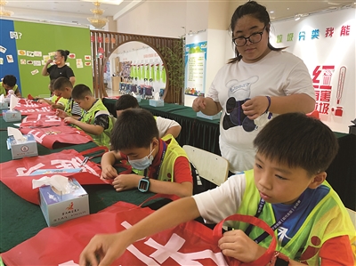 在下午的活動中,小記者們來到城管義工展廳,學(xué)習(xí)用廢棄的橫幅手工縫制環(huán)保袋,積極響應(yīng)“低碳生活”的號召。許多小朋友都是第一次做針線活,但看到自己制作完成的環(huán)保袋后,充滿了成就感。