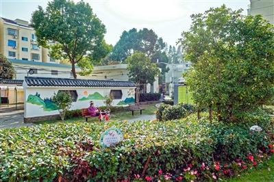 “微更新90%的內(nèi)容,都是居民自己完成的?!睘轫?xiàng)目提供專業(yè)藝術(shù)支持的王翔威介紹,設(shè)計(jì)師經(jīng)與居民討論確定喜愛的江南風(fēng)格圖畫,并在墻上用鉛筆打稿,隨后由“香楠路家園守護(hù)隊(duì)”及其他居民耗時(shí)2周時(shí)間,完成全部墻繪上色。此外,居民文藝骨干還發(fā)揮主觀能動(dòng)性,在廣場(chǎng)正中一座小亭子的立柱上,添上內(nèi)容為“露潤(rùn)香園浮瑞色 霜含雅韻掛繁英”的對(duì)聯(lián),使環(huán)境再添幾分“文氣”。長(zhǎng)廊、粉墻、拱門,墻上的“小橋流水”,外加紅杏樹、柳樹、風(fēng)信子等景致,讓人仿佛“誤入”一座簡(jiǎn)約版的江南園林。