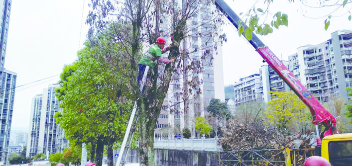 原來(lái),位于枇杷坪青龍西路的水韻天成小區(qū)一直有個(gè)隱患,就是小區(qū)公路兩旁的部分行道樹枯萎傾斜,刮風(fēng)下雨時(shí)有倒伏傷人、砸壞車輛的風(fēng)險(xiǎn),居民為此憂心,于是向區(qū)城市管理局進(jìn)行反映。
