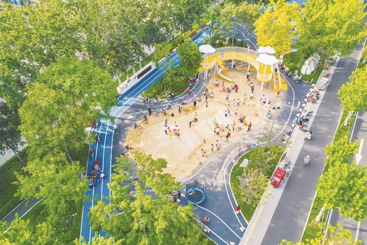 在陽光的照耀下,一條紅白相間的城市綠道尤為顯眼,市民或悠閑鍛煉,或漫步其中……9月5日,在張店區(qū)中潤大道口袋公園,休閑涼亭內(nèi)坐滿了老年人,他們有的打牌下棋、有的嘮家常,十分愜意。