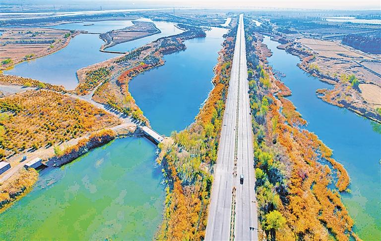 11月6日,從空中俯瞰黃河賀蘭段濕地,美景如畫。近年來,銀川市不斷推進(jìn)“美麗河湖”建設(shè),呈現(xiàn)出城水相依、人水和諧的生態(tài)宜居畫卷。 (記者 馬楠 王洋 攝)