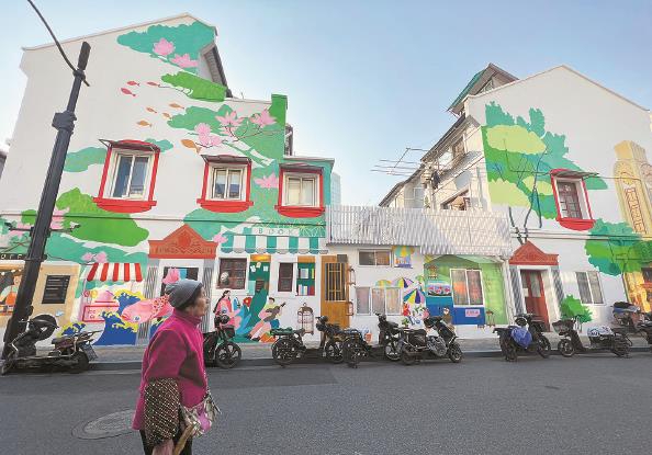 這一墻“奔赴彩繪”,也來自今年街區(qū)更新的居民創(chuàng)意。居民們說,“城市之心”的街區(qū)彩繪,就要有上海格調(diào)、江南韻味、中國氣派!