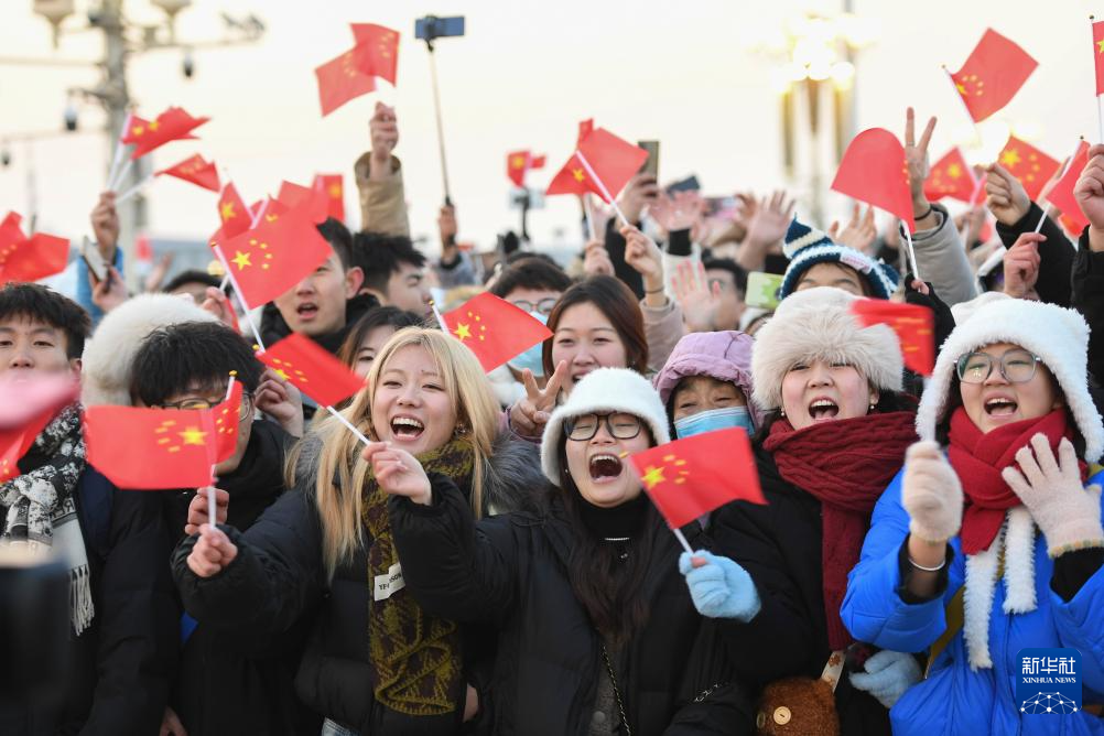 人群中,站在前排的李志平頭發(fā)斑白。與新中國同齡的他,是一名資深攝影愛好者?!斑@是我第四次從河北老家來北京看升旗,但還是頭一次參加元旦場次,激動極了。”今年,他還計劃到貴陽、張家界“解鎖”更多祖國“大片”?!板\繡山川,大美中國!祝愿祖國明天越來越好!”