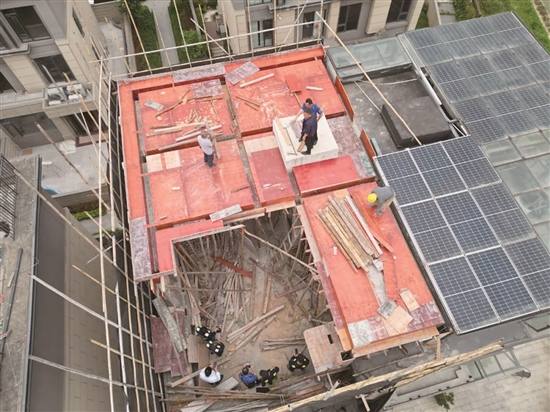 4月1日,中堂城管分局通過無人機(jī)巡查發(fā)現(xiàn)斗朗社區(qū)金茂淺水灣別墅區(qū)內(nèi)有一處違法加建行為,現(xiàn)場正搭建模板。次日上午,中堂城管分局對違法加建部分采取快速拆除措施,拆除面積60平方米。4月15日,中堂鎮(zhèn)召開違建治理拆違現(xiàn)場會,對一宗航飛巡查發(fā)現(xiàn)的面積300平方米的違法搭建建筑物進(jìn)行拆除。
