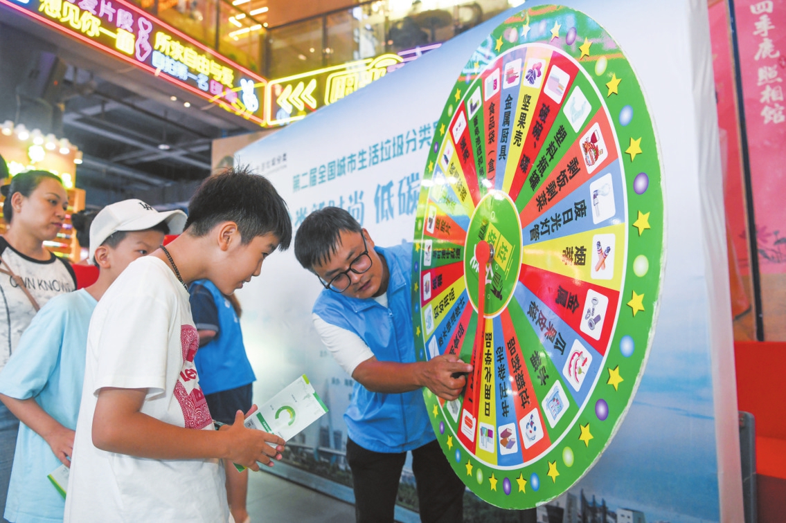 5月26日,在“分類新時(shí)尚·低碳齊參與”活動上,小朋友參加大轉(zhuǎn)盤游戲。 記者 楊鶴 攝
