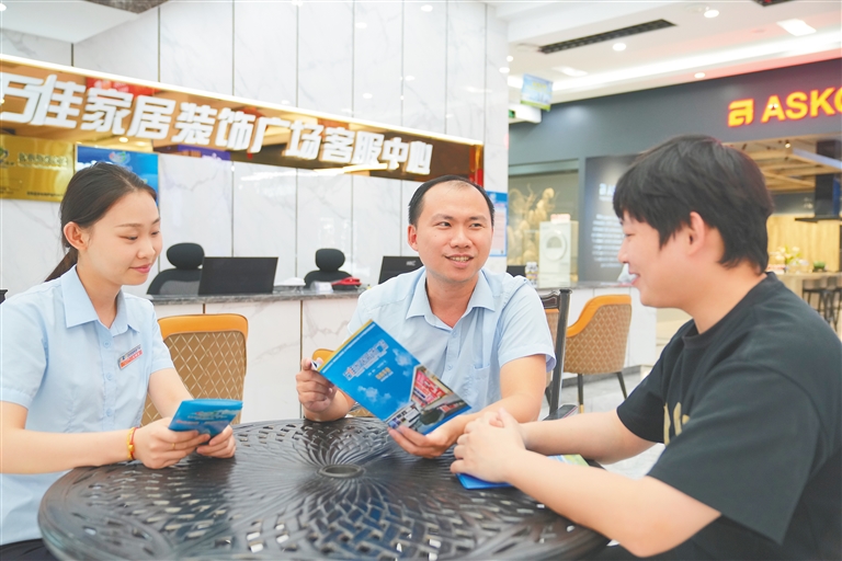 “廣場內(nèi)入駐有近200家商戶,自2022年底成為放心消費商圈以來,我們便聯(lián)合商家通過實行承諾7天無理由退換貨、先行賠付機制等舉措,不斷優(yōu)化消費環(huán)境?!焙D先f佳家居裝飾廣場副總經(jīng)理吳雄介紹。