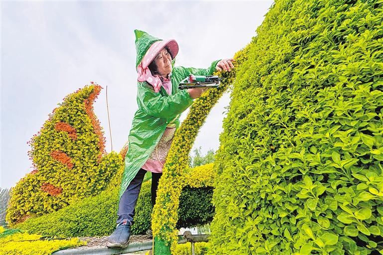 9月9日,銀川市綠化養(yǎng)護(hù)中心花卉基地,工作人員制作一座座造型獨(dú)特的綠雕。中秋、國慶“雙節(jié)”將至,銀川市園林部門將在城市主要干道、廣場公園展擺120萬盆鮮花,這一抹抹亮色將為城市帶來無限活力和濃郁的節(jié)日氛圍。 記者 馬楠 王洋 攝
