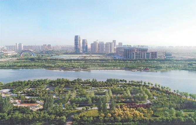碧波蕩漾的石家莊市滹沱河。 新華社記者 楊世堯攝