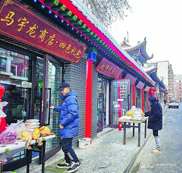 烏魯木齊市永和巷按照中式仿古建筑風(fēng)格改造,既保留了老街的歷史韻味,又賦予其現(xiàn)代審美。圖為1月6日,居民在永和巷選購(gòu)商品。