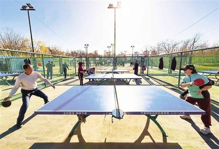 4月5日,市民在銀川毓秀公園打乒乓球。當(dāng)日,該公園迎來許多晨練市民,運(yùn)動的人們成為假日清晨的亮麗風(fēng)景。記者 馬楠 攝