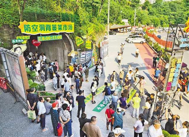 重慶建“洞子菜市”的探索很早就開始了。2021年,沙坪壩區(qū)石井坡街道和平山社區(qū)的大河溝菜市場因拆舊建新,臨時搬遷至映山紅公交站附近的一條廢棄鐵路隧道。搭建攤位、安裝照明、制作標(biāo)識、安排專人保潔,經(jīng)過改造,這條建于20世紀(jì)60年代的隧道,被打造成便民利民的“洞子菜市”,服務(wù)周邊4000多戶居民。