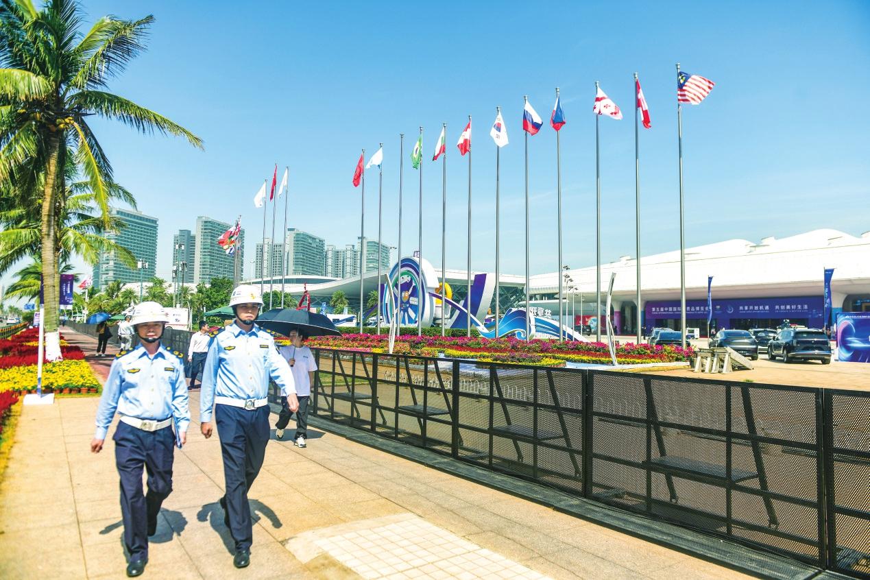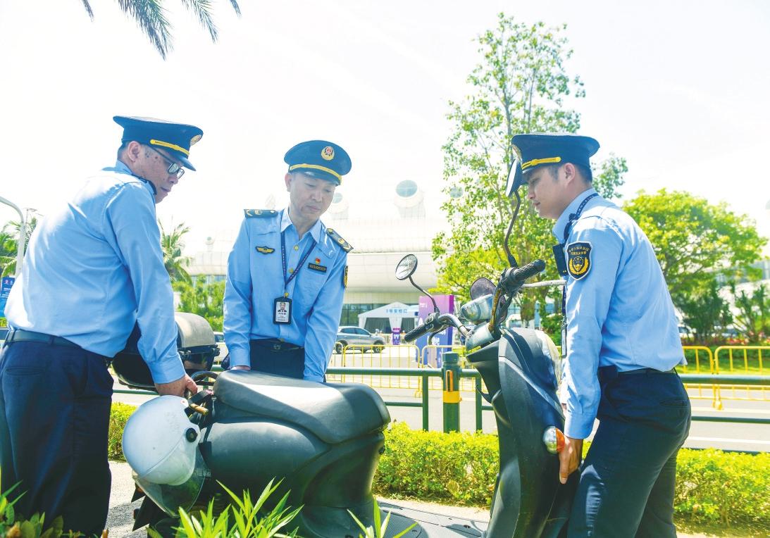 “從4月10日開始,秀英分局就著手清理海南國(guó)際會(huì)展中心周邊的廣告牌、路面污染和車輛亂停放現(xiàn)象。在4月13日展會(huì)開始前,全部清理完畢?!笔芯C合行政執(zhí)法局秀英分局城市管理行政執(zhí)法大隊(duì)大隊(duì)長(zhǎng)廖忠科介紹說,該局通過制定保障工作方案、召開部署會(huì),安排園區(qū)大隊(duì)、農(nóng)業(yè)大隊(duì)、應(yīng)急大隊(duì)負(fù)責(zé)展會(huì)核心區(qū)域的執(zhí)法保障,城市管理大隊(duì)作為機(jī)動(dòng)力量,鎮(zhèn)街中隊(duì)負(fù)責(zé)展區(qū)外的屬地常態(tài)化管理。執(zhí)法人員通過駐點(diǎn)、步巡和車巡的方式,巡控會(huì)展中心周邊,處置突發(fā)情況。