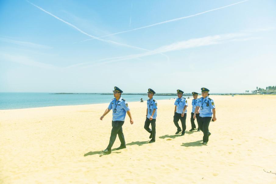 消博會(huì)期間,???/span>市綜合行政執(zhí)法局海洋和漁業(yè)行政執(zhí)法支隊(duì)執(zhí)法人員巡查會(huì)展中心周邊沙灘。