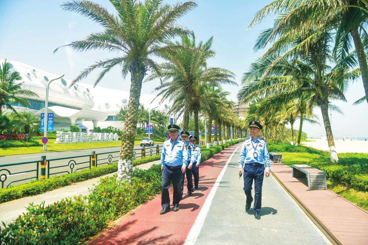 消博會(huì)期間,???/span>市綜合行政執(zhí)法局生態(tài)環(huán)境保護(hù)行政執(zhí)法支隊(duì)執(zhí)法人員在海色路巡查。