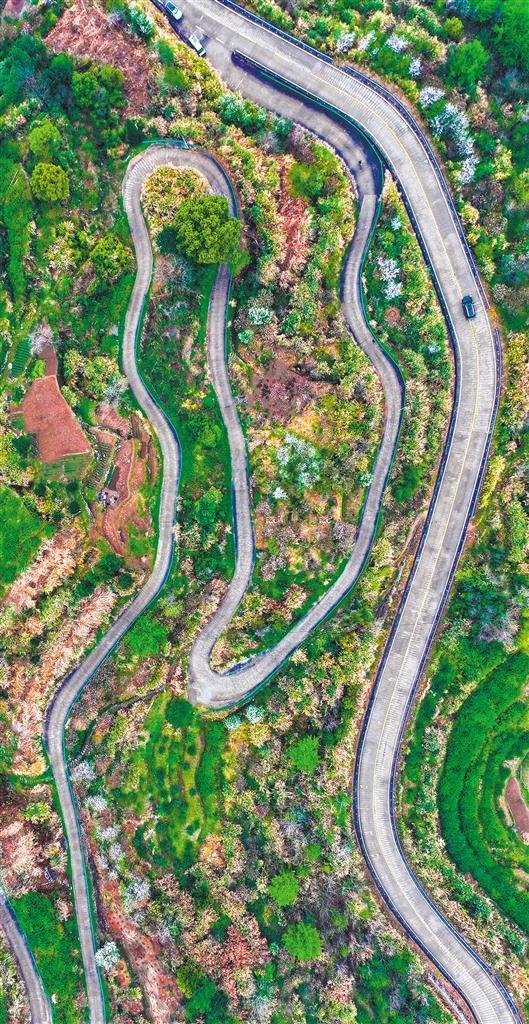3月30日拍攝的浙江臺(tái)州市三門縣亭旁鎮(zhèn)至橫渡鎮(zhèn)枧頭盤山公路。該縣已實(shí)現(xiàn)“村村通公路、村村通公交”。林利軍攝(中經(jīng)視覺(jué))
