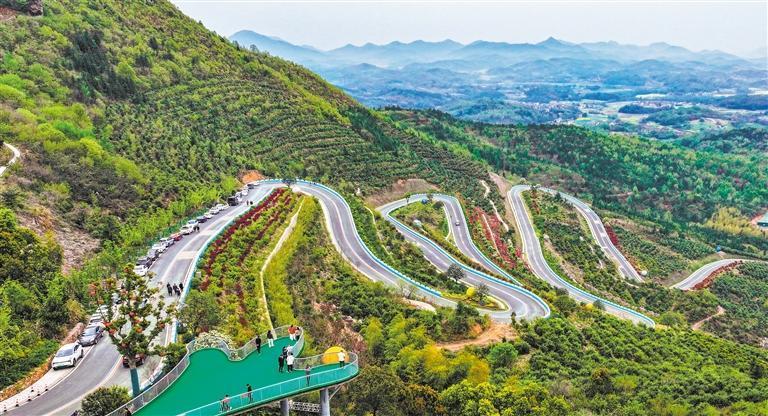 4月4日,游客在安徽合肥市廬江縣礬山鎮(zhèn)農(nóng)村公路“六道拐”路段觀光。巢志斌攝(中經(jīng)視覺(jué))
