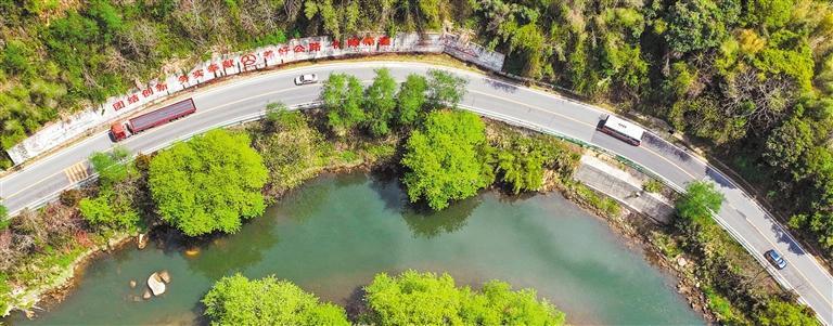 4月3日,江西宜春市宜豐縣黃崗鎮(zhèn),平坦整潔的農(nóng)村公路與樹木、河流相互映襯。周亮攝(中經(jīng)視覺(jué))