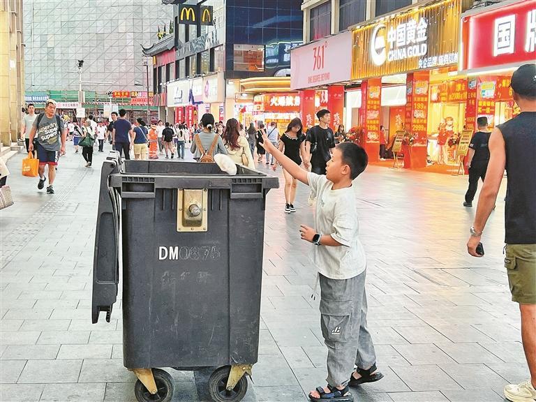 如此龐大的客流量,卻沒有讓街區(qū)變得雜亂無章,街道依舊干凈整潔。這離不開環(huán)衛(wèi)工人的辛勤付出,王阿姨便是其中的代表。假期五天,她持續(xù)作業(yè),不僅要處理日益增多的垃圾和紙箱等廢棄物,還被調派至人流密集區(qū)域加強保潔力度。“最忙的時候是下午4點到6點,我們得保證垃圾不落地?!蓖醢⒁踢吳謇韽U棄飲料瓶邊告訴記者。
