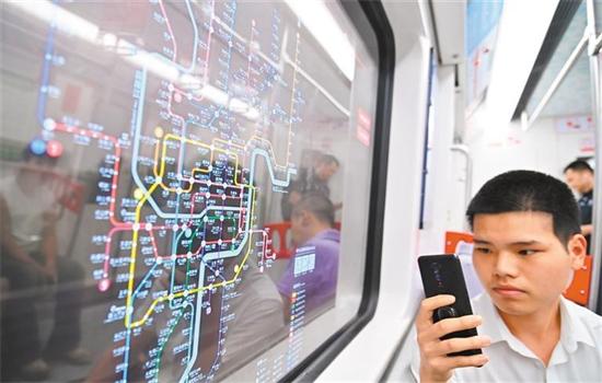 5月7日,重慶軌道交通1號(hào)線列車智慧車窗,乘客在透明OLED顯示屏上查看線路、前方到站、3D站臺(tái)、周邊景點(diǎn)等信息。重慶市已打造多個(gè)智慧車站,采用智慧安防、智能開關(guān)站、客流智能分析預(yù)測(cè)等技術(shù),為乘客帶來(lái)全新的出行體驗(yàn)。孫凱芳 攝(中經(jīng)視覺(jué))