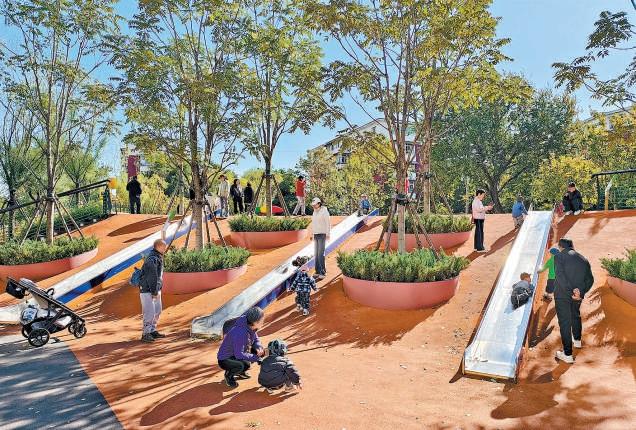 “豐彩城市藝術(shù)季”賽事結(jié)果揭曉,圖為新村街道漫氧·樂谷公園。記者 劉平攝