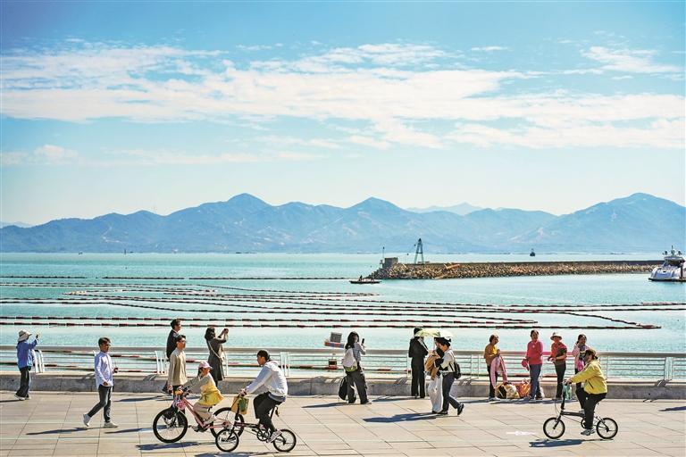 11月23日,市民在南山區(qū)海濱棧道游玩。記者 嚴(yán)文婷 攝