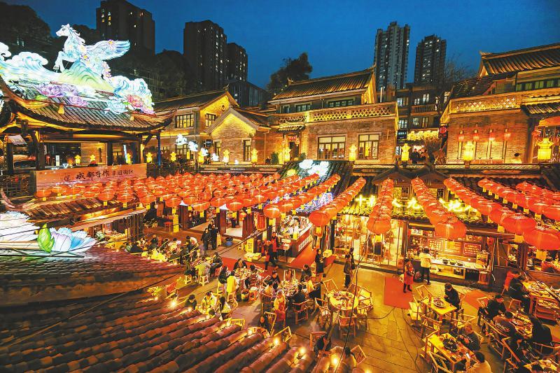 1月15日,成都東門市井2026年“龍馬精神·市井民俗燈會(huì)節(jié)”亮燈,吸引游客前往。 周巧旻 攝(C視覺)