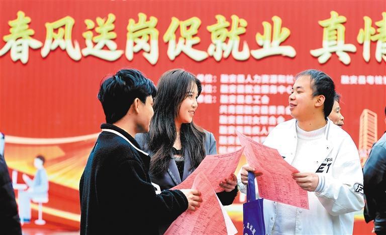 2月25日,廣西壯族自治區(qū)柳州市融安縣長(zhǎng)安廣場(chǎng),求職者在了解招聘崗位信息。覃慶和攝(中經(jīng)視覺(jué))