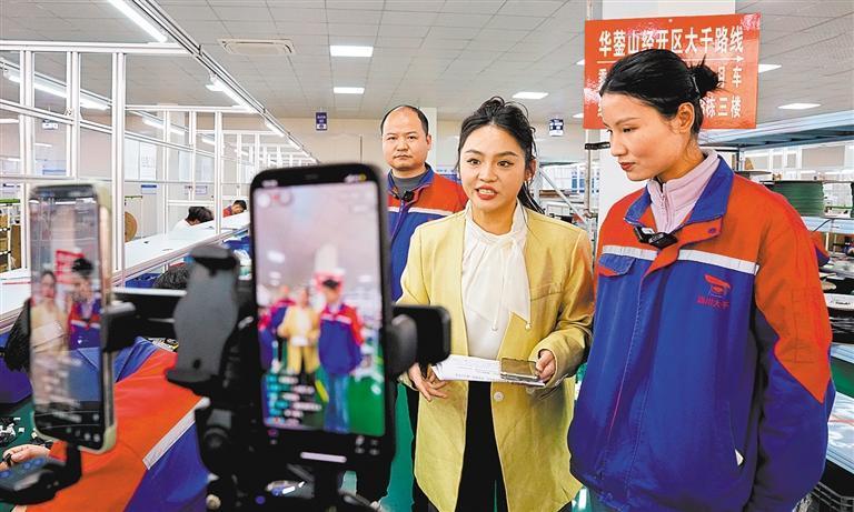 2月26日,四川省華鎣市組織網(wǎng)絡(luò)主播走進(jìn)企業(yè)生產(chǎn)車間,通過(guò)直播平臺(tái)向網(wǎng)絡(luò)求職者介紹企業(yè)情況。當(dāng)?shù)卮罱ㄆ髽I(yè)和求職者崗位對(duì)接平臺(tái),實(shí)現(xiàn)“崗位找人”與“人找崗位”雙向互動(dòng)。周松林?jǐn)z(中經(jīng)視覺(jué))