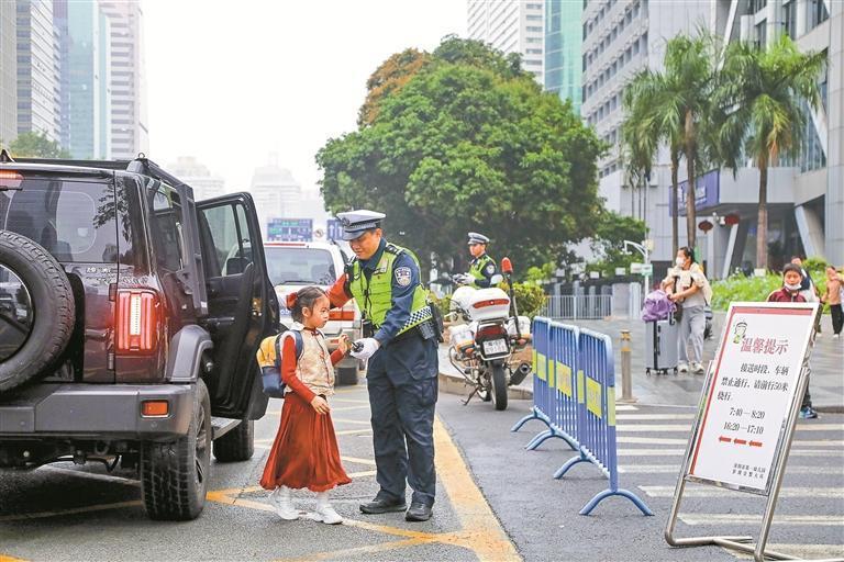 3月2日,2026年春季新學(xué)期開學(xué)首日恰逢周一早高峰,通勤與送學(xué)車流“雙疊加”,學(xué)校周邊道路交通壓力增大。為守護學(xué)生安全入校、保障周邊交通秩序順暢,深圳交警全面啟動新學(xué)期“護學(xué)”行動,以“地面疏導(dǎo)+空中巡查”立體化管理模式,加強警力值守、無人機護航、現(xiàn)場疏導(dǎo)、安全勸導(dǎo),多措并舉守護新學(xué)期校園交通安全。(深圳特區(qū)報記者 解樹森 賴犁 攝影報道)