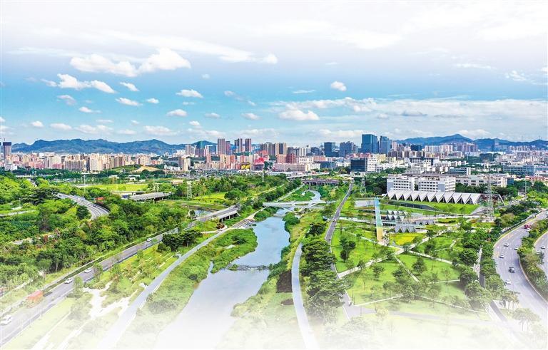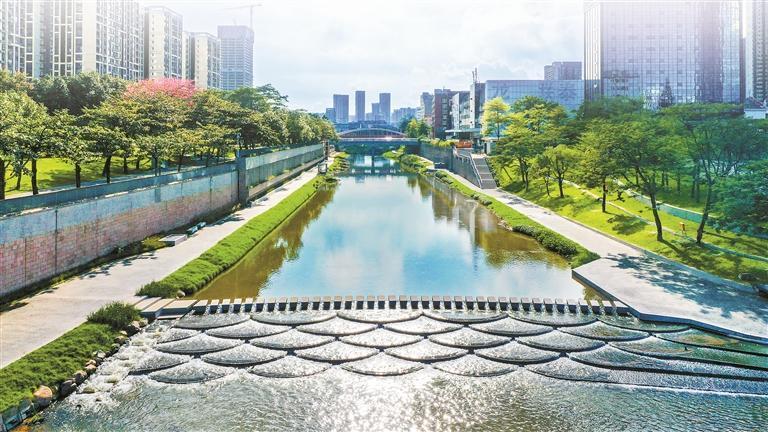 水環(huán)境改善方面,堅持“一河一策”系統(tǒng)治理,綜合運用管網(wǎng)完善、廠站擴能、問題排口精準(zhǔn)治理、生態(tài)補水等措施,21個國省考斷面連續(xù)三年達(dá)優(yōu)率100%,全市優(yōu)良河長占比由2020年的22.9%提升至90.1%。水清岸綠、魚翔淺底,茅洲河、龍崗河、觀瀾河、大沙河等多條碧道環(huán)境優(yōu)美,成為市民喜愛的“網(wǎng)紅”親水休閑打卡點。