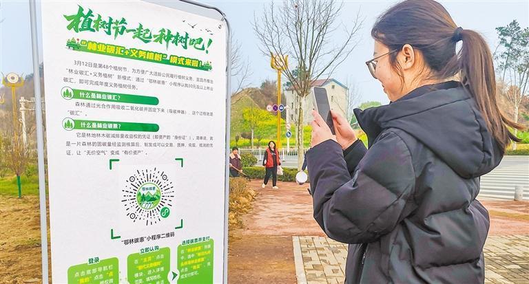 3月10日,湖北省宜昌市秭歸縣市民線上購買林業(yè)碳票。當(dāng)?shù)赝瞥觥傲謽I(yè)碳匯+義務(wù)植樹”模式,讓市民實現(xiàn)手機“種碳”。周仕偉攝(中經(jīng)視覺)