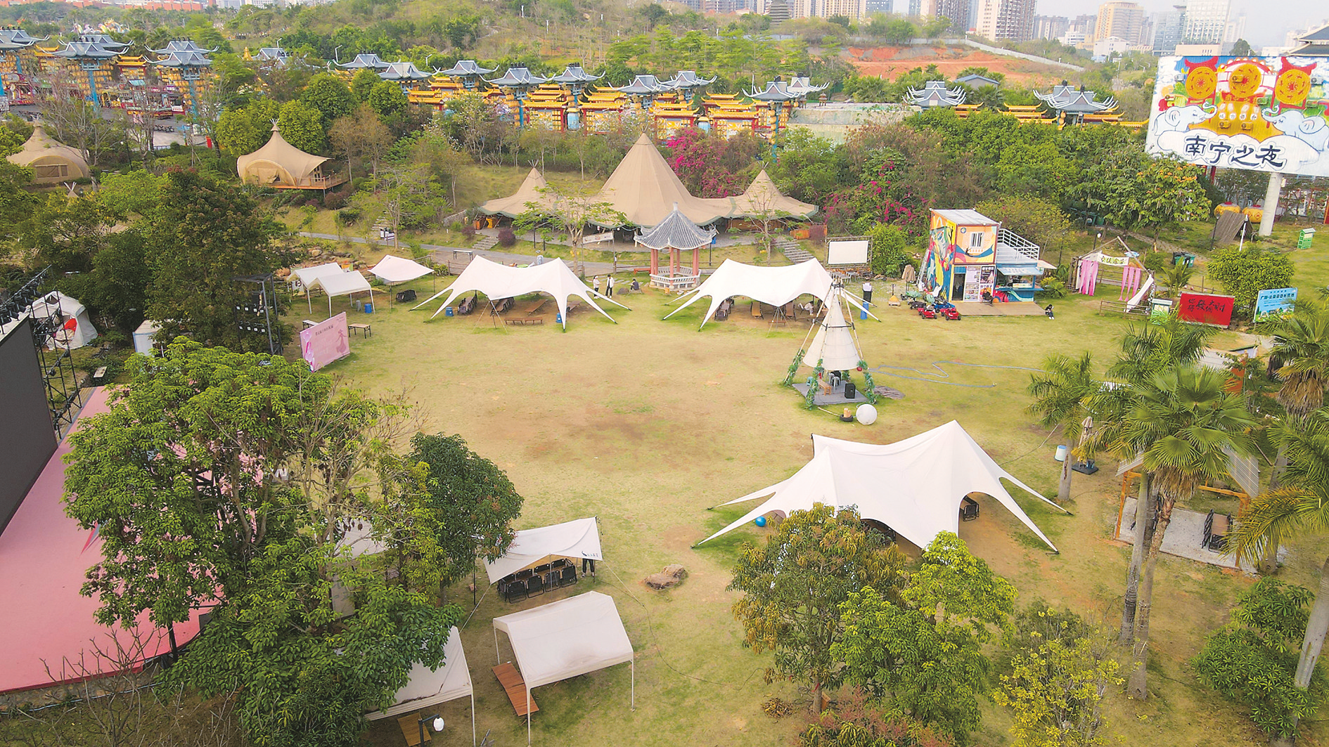 此外,嵌入五象總部休閑公園核心區(qū)的野行野宿五象營(yíng)地,將公園綠地與露營(yíng)功能深度融合,打造“下樓即露營(yíng)、下班即度假”的便捷模式;青芒露營(yíng)以森林系為特色,依托茂密綠植營(yíng)造天然氧吧,成為市民打卡出片、放松身心的“秘密花園”。