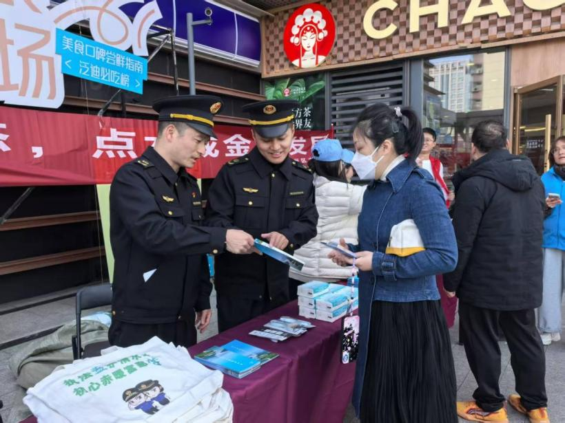 “阿姨,洗滌劑流進(jìn)河里,河面上會(huì)不好看,魚兒也會(huì)‘皺眉’?!卑Q中隊(duì)執(zhí)法人員郭鵬飛一邊發(fā)放普法宣傳單,一邊用生動(dòng)的語言向居民提醒保護(hù)水環(huán)境的重要性。該中隊(duì)堅(jiān)持“宣傳先行,提示走心”,除在沿岸做好普法宣傳外,更在河埠頭醒目位置設(shè)置提示牌,提醒居民不可在景觀河內(nèi)洗滌、游泳。同時(shí),在“世界水日”等重要時(shí)間節(jié)點(diǎn),中隊(duì)走進(jìn)泛迪中心,深入群眾開展普法工作,為其送上“護(hù)水普法”小禮物,讓護(hù)水意識(shí)充分浸潤到過往群眾心中。