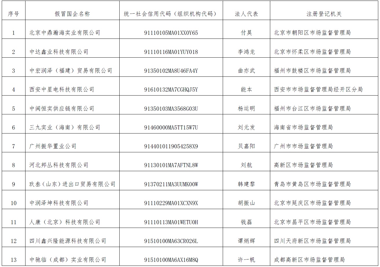 據(jù)了解,2021年10月22日,國(guó)務(wù)院國(guó)資委網(wǎng)站將中央企業(yè)公告的假冒國(guó)企名單進(jìn)行了匯總公布,明確353家公司及其下設(shè)各級(jí)子公司均為假冒國(guó)企。