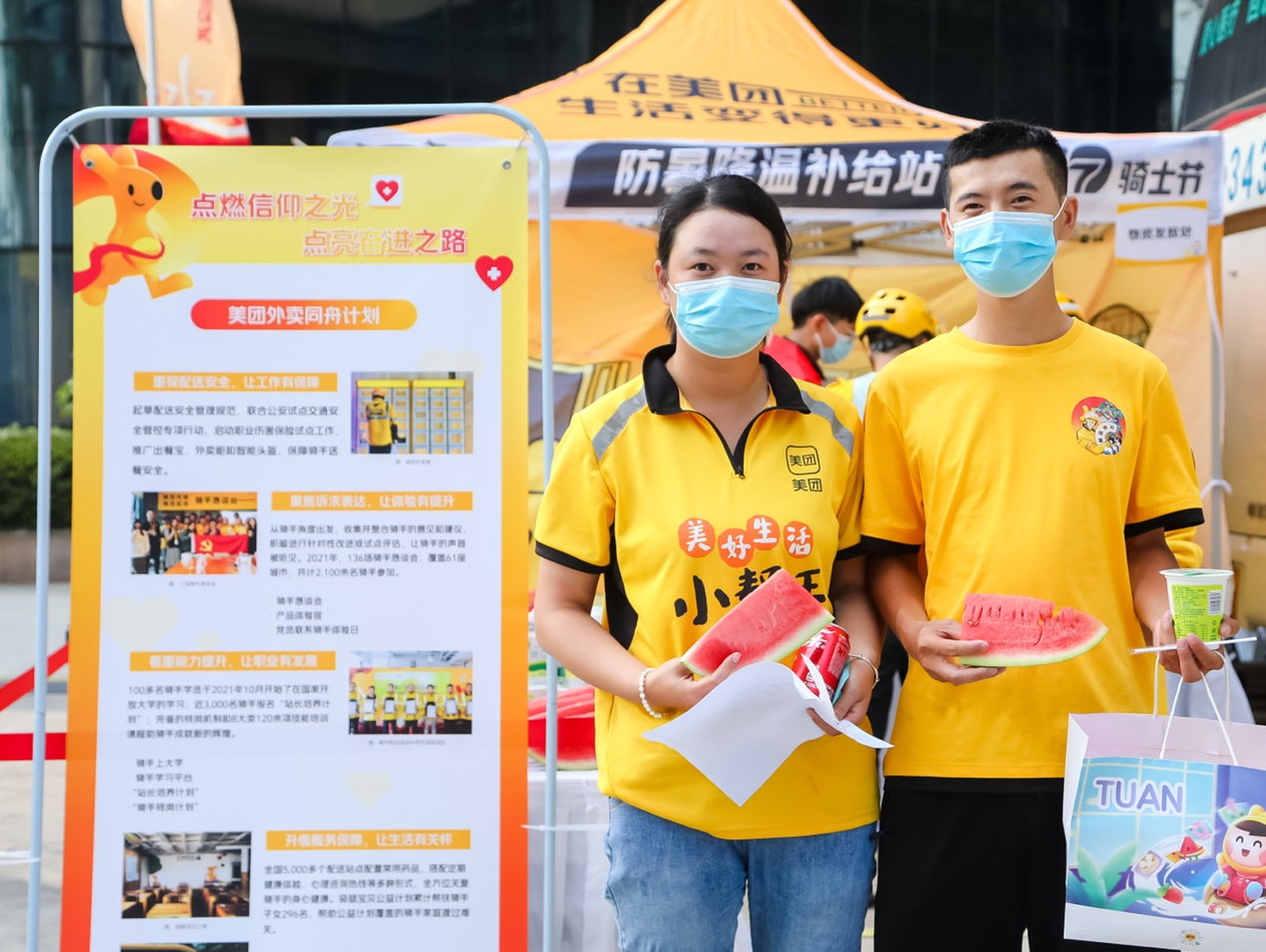 今年7月17日是第五個“717騎士節(jié)”,為向廣大騎手傳遞節(jié)日關(guān)懷、加強騎手勞動安全保障,美團配送在全國超過100個城市增設(shè)防暑驛站,為騎手提供休息場所和消暑補給,并向騎手發(fā)放防曬用品和夏季常用藥品等防暑物資。在深圳、杭州、成都等7個城市,美團配送的騎手健康體檢車也開上街頭,為騎手提供“隨到隨檢”的便捷服務(wù)。